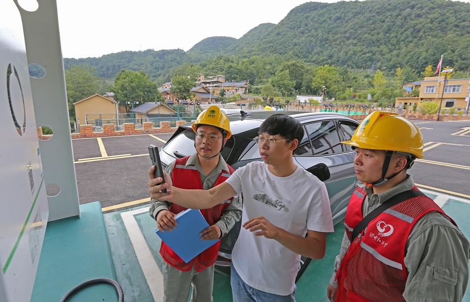 位于村委会后院的光伏棚,可以让6辆新能源汽车同步蓄电;广场上的光伏桌椅,除休憩外,还能为手机无线充电;“目前,我们主干道沿线盏路灯、公共厕所照明灯和充电桩,都靠光伏设备供电,每年节省电费支出4万元。”张文灿说。